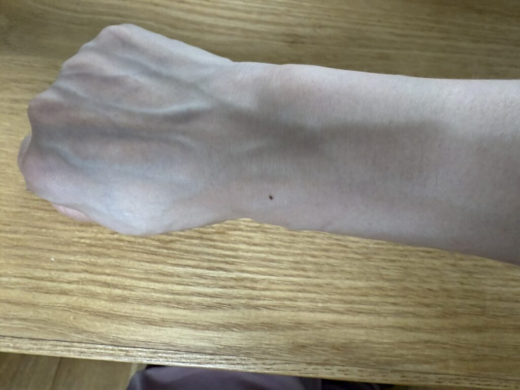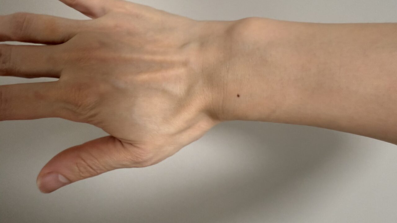 手の静脈は表皮のすぐ下を通っているため、表皮が薄くなるにつれて静脈が露出するようになり、血管が浮き出て見えるようになります。