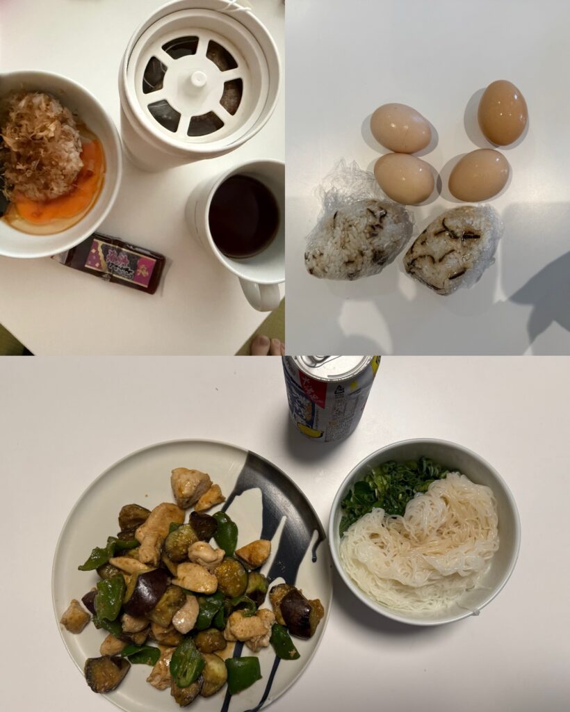 昼:ゆで卵4個+昆布おにぎり80g2個(1.2時間置きに食べてます)