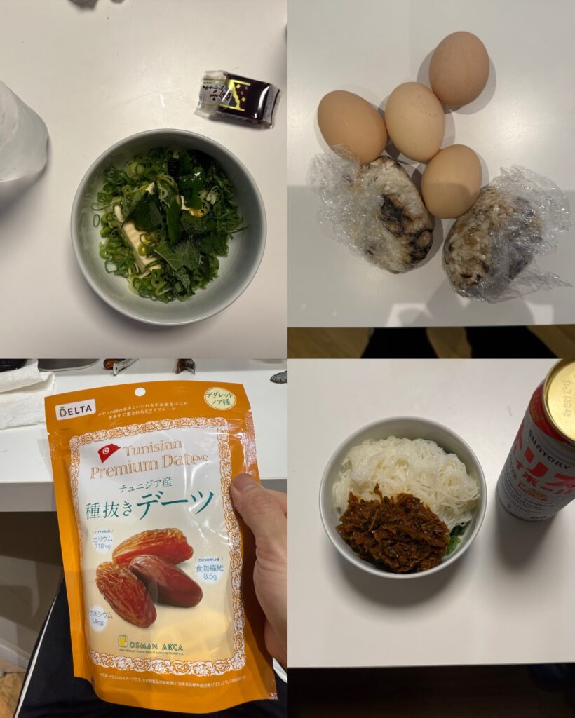 昼:ゆで卵4個+昆布おにぎり80g2個(1.2時間置きに食べてます)