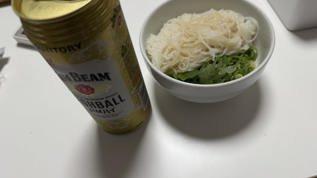 夜:シーフード野菜炒め、こんにゃく素麺、海藻サラダ