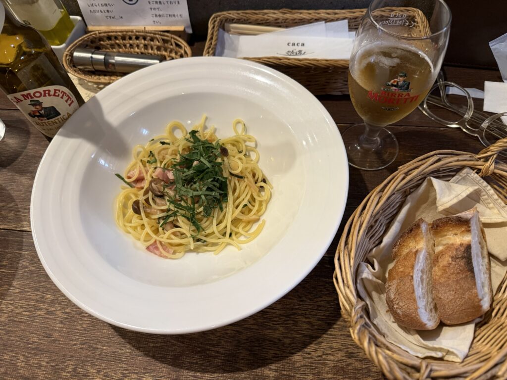 夜:ハイボール、お菓子こんにゃく素麺、海藻サラダ
