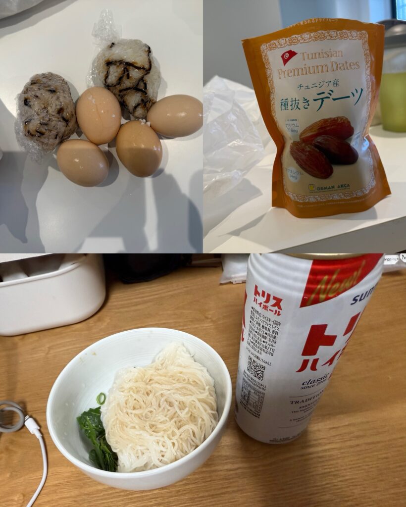 夜:こんにゃく素麺、ハイボール、じゃがりこ