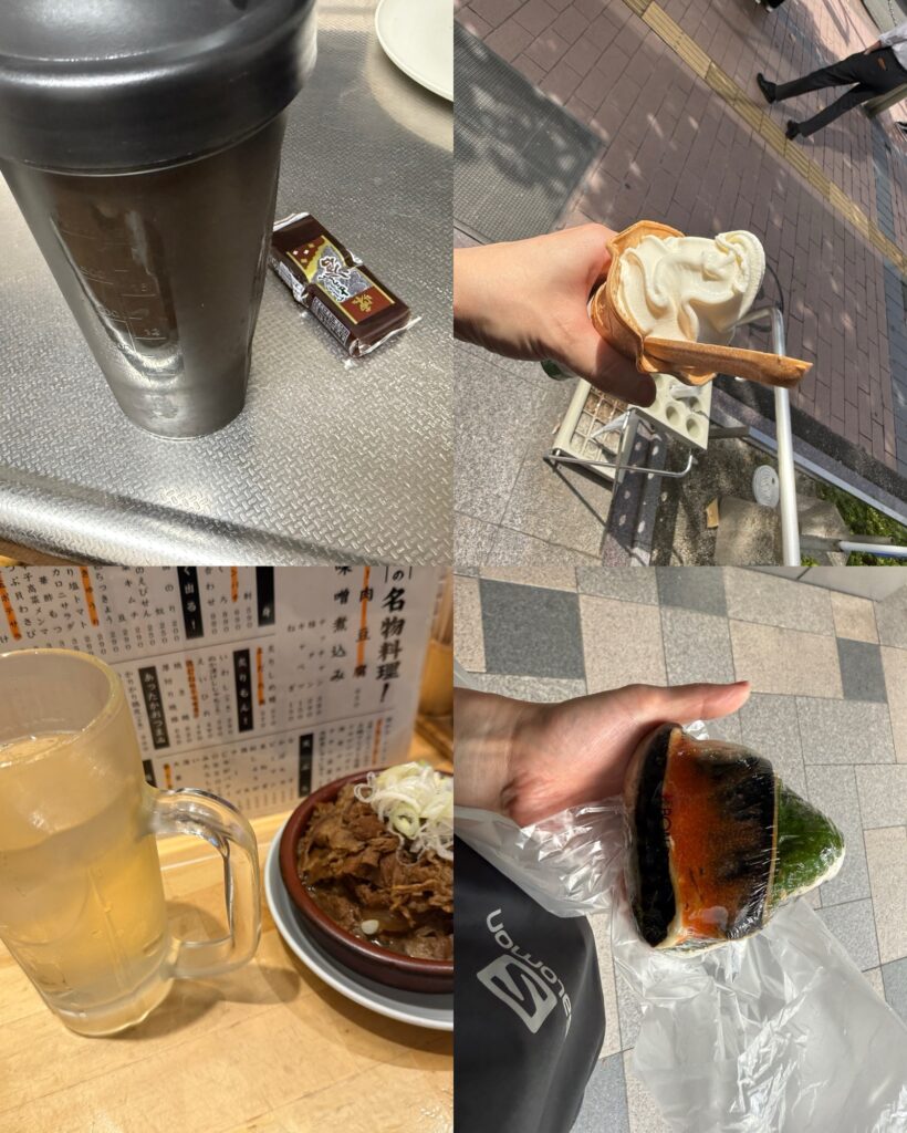 食事:朝:プロテイン、EAA、羊羹