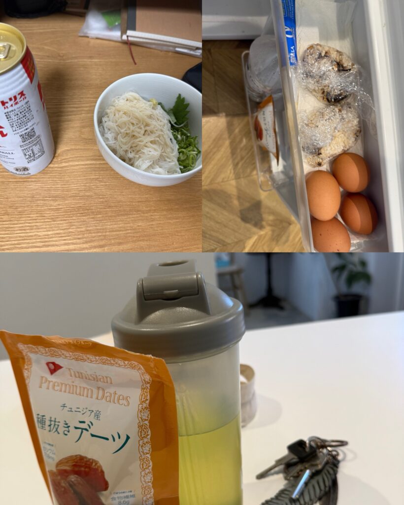 夜:こんにゃく素麺、ハイボール、じゃがりこ、アイス