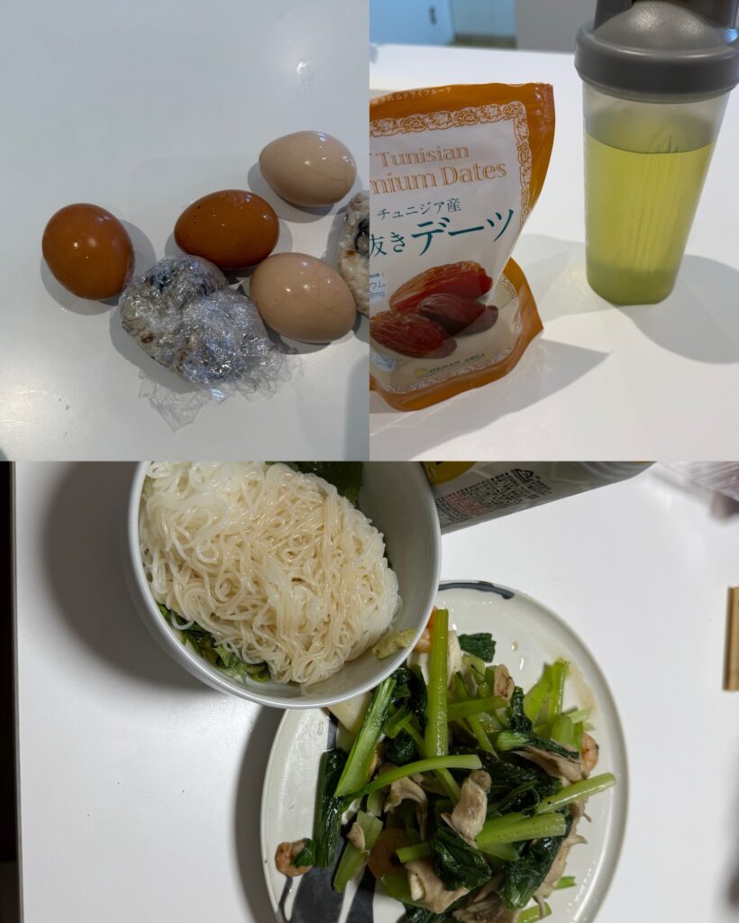 昼:ゆで卵4個+昆布おにぎり80g2個(1.2時間置きに食べてます)