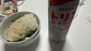夜:シーフード野菜炒め、こんにゃく素麺、ハイボール