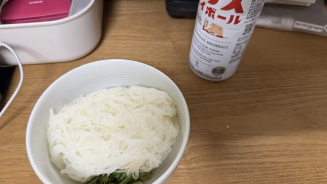 夜:こんにゃく素麺、ハイボール