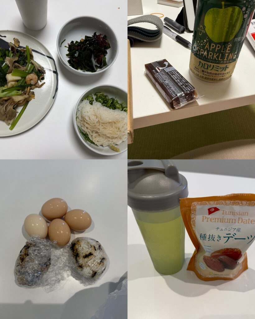 昼:ゆで卵4個+昆布おにぎり80g2個(1.2時間置きに食べてます)