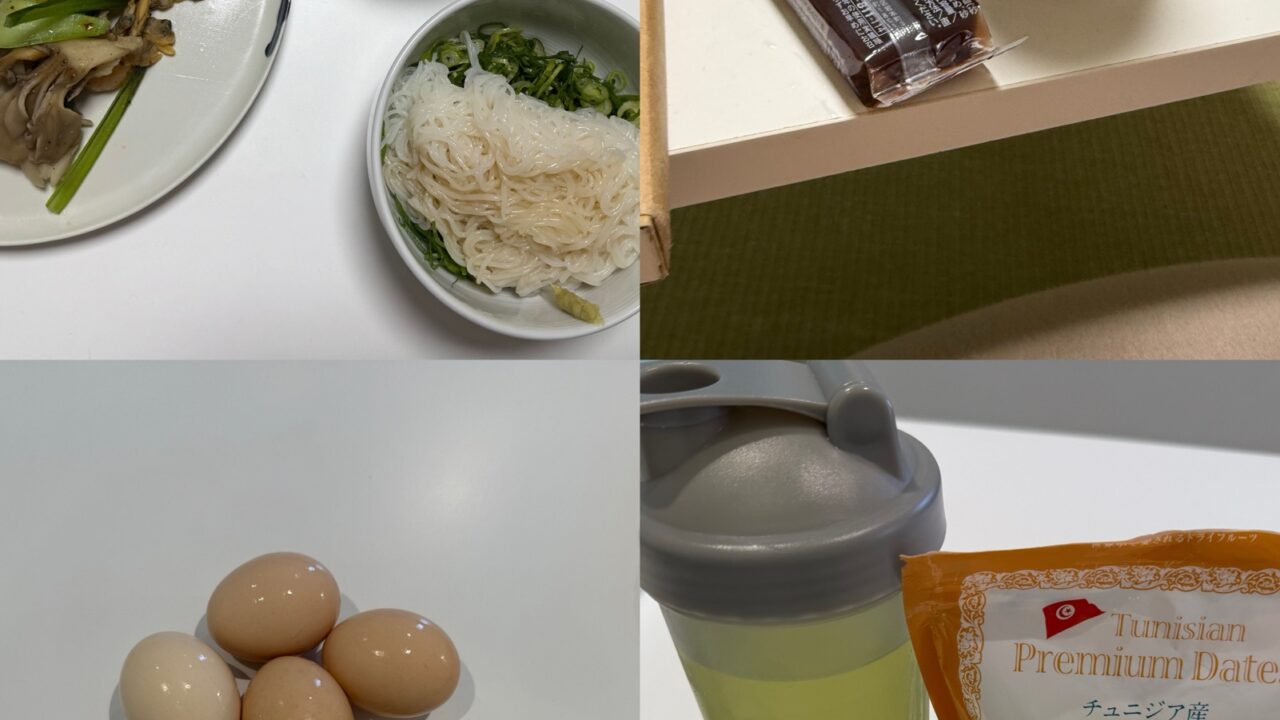 昼:ゆで卵4個+昆布おにぎり80g2個(1.2時間置きに食べてます)