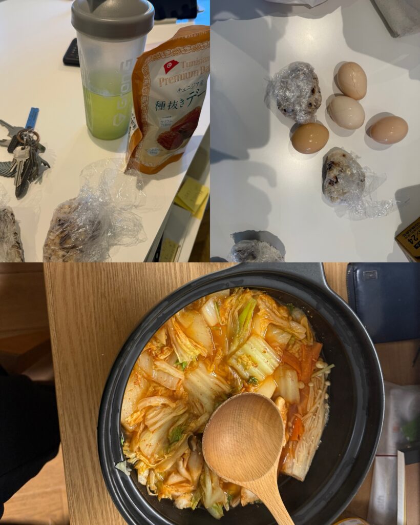 昼:ゆで卵4個+昆布おにぎり80g2個(1.2時間置きに食べてます)